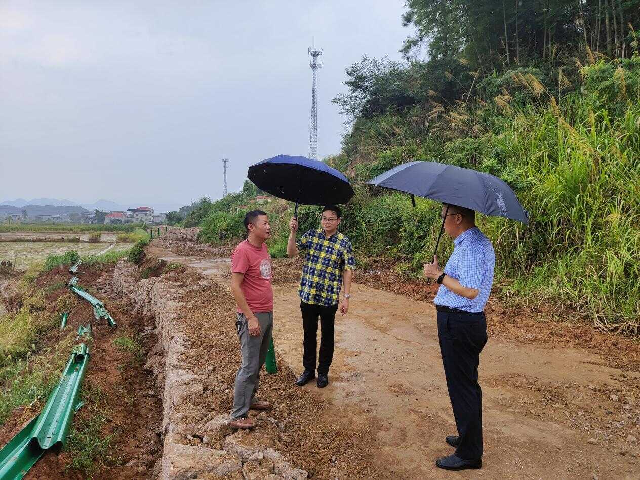 邹剑锋一行实地查看了罗家铺到阮家湾路段拓宽、加固等情况,听取了相关工作情况汇报。