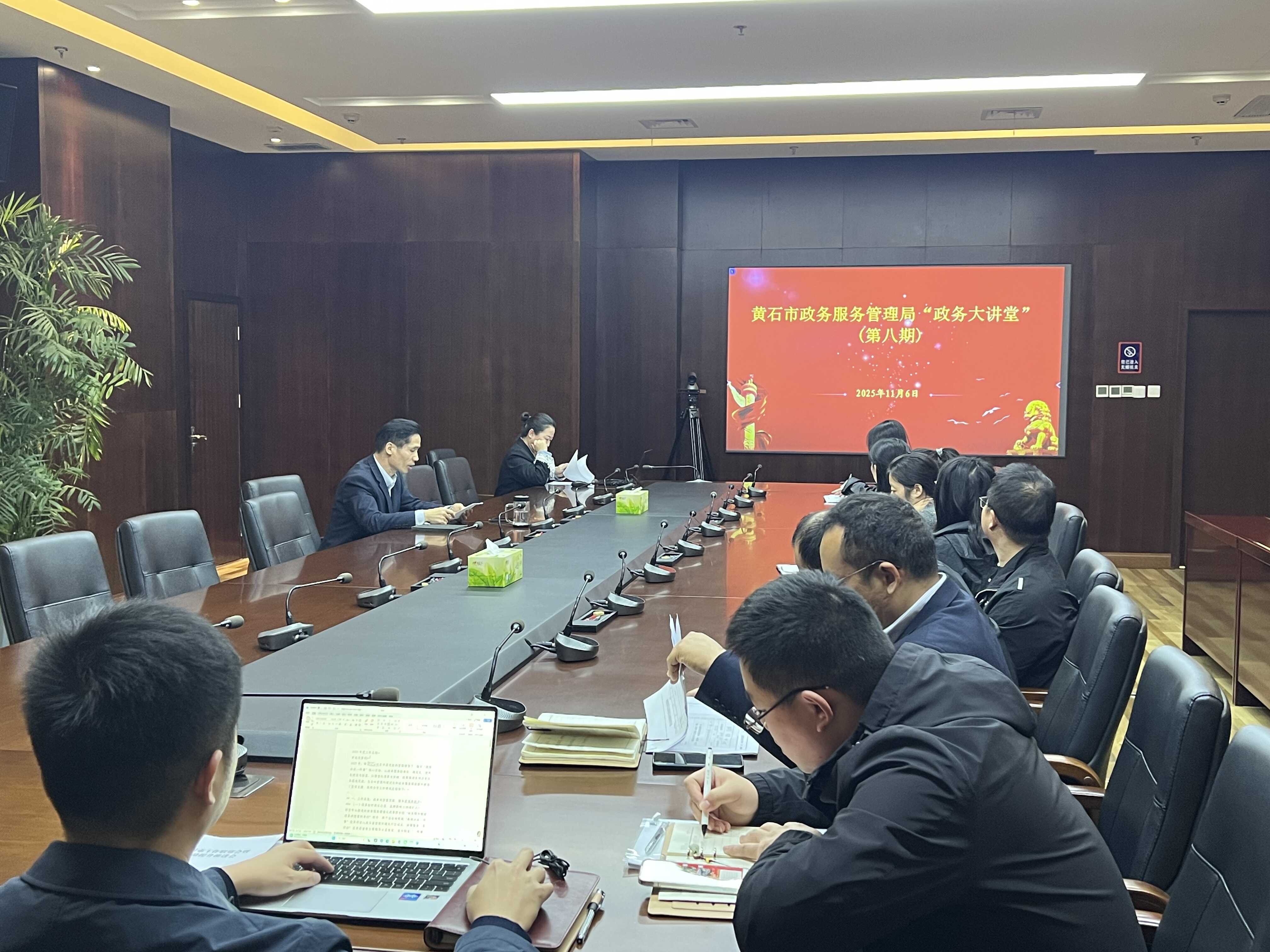 为持续深化干部职工业务能力建设,打造高素质专业化干部队伍,2025年11月6日下午,市政务服务管理局成功举办第八期“政务大讲堂”活动。活动由局党组成员、副局长吴学东同志主持。
