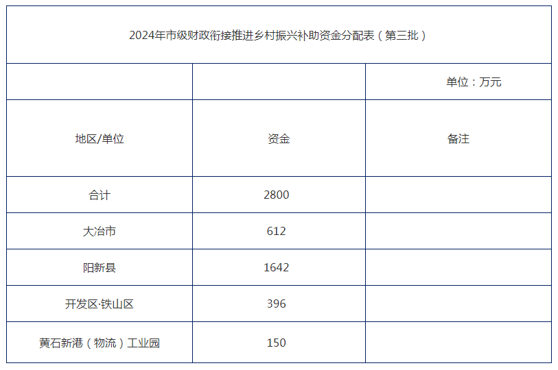 2024年市级财政衔接推进乡村振兴补助资金分配表(第三批)
