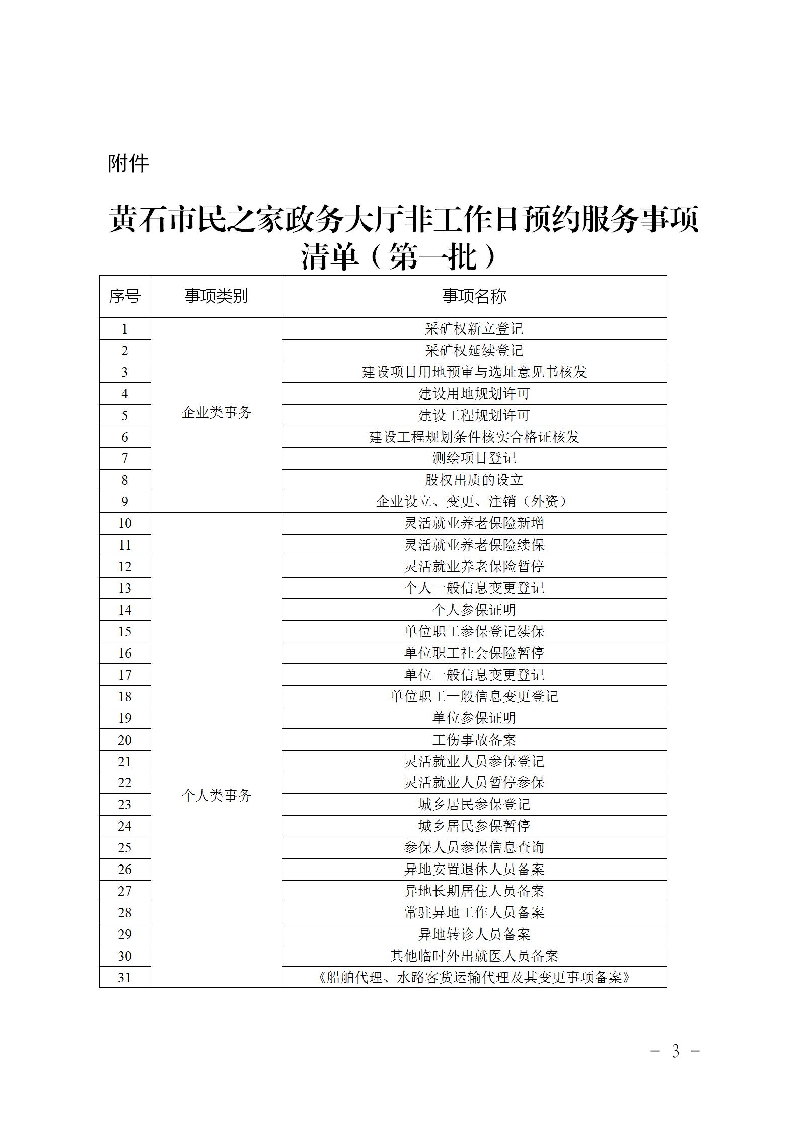 一是线上预约:登录“鄂汇办”APP 或关注黄石市政务服务管理局微信公众号,在对应板块完成在线预约;