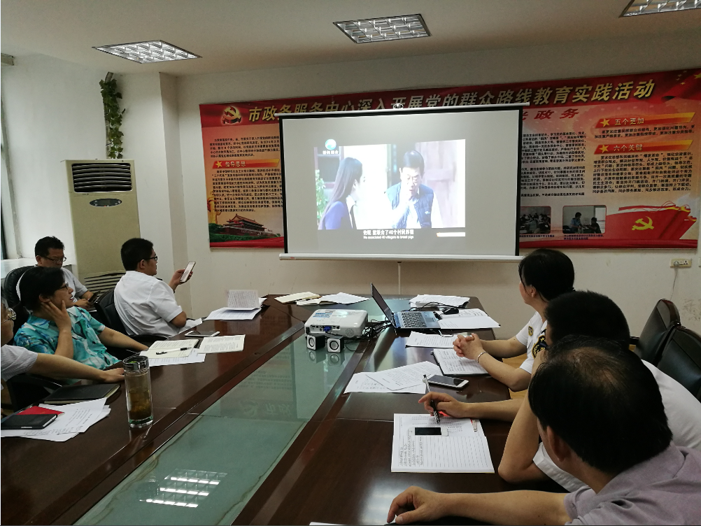 2016年6月30日下午,市政务服务中心管理办公室组织中心全体党员干部在4楼会议室集中收看了电影《刘伦堂》,做到了全员参与、全员观看。