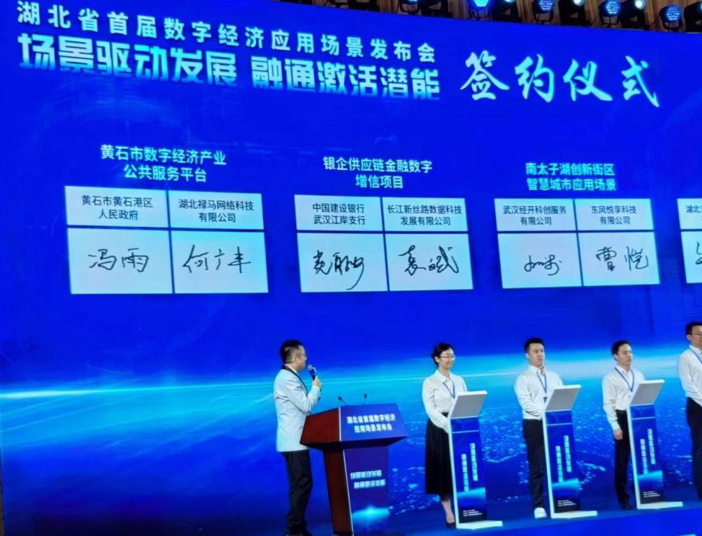 8月11日,“2023东湖算力与大数据创新大会暨首届数字经济应用场景发布会”公布湖北省首批数字经济典型应用场景名单,由黄石港区人民政府与湖北禄马网络科技有限公司联合打造的“黄石市数字经济产业公共服务平台”应用需求场景入选榜单,并在省领导的见证下现场签约。