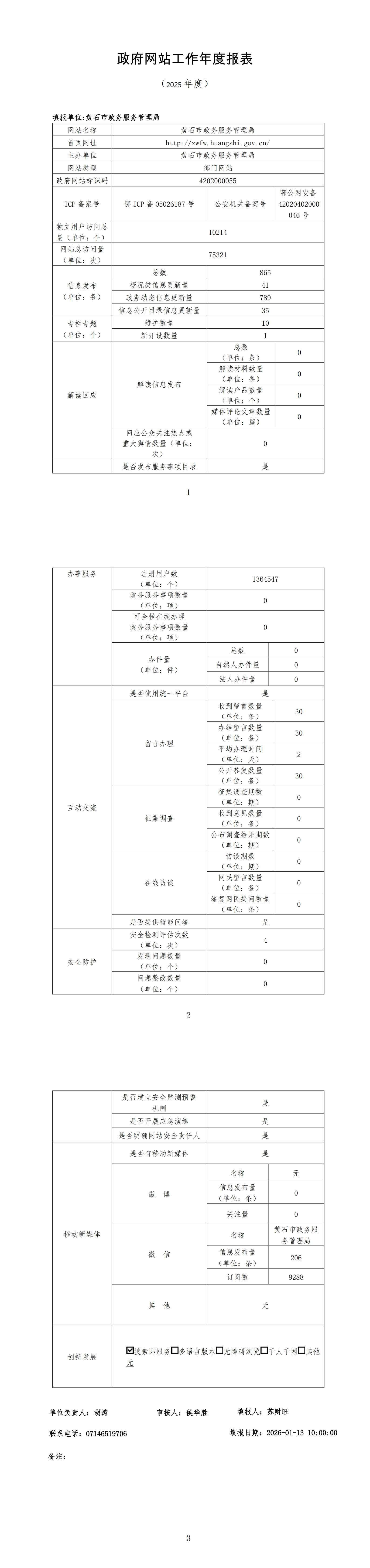 黄石市政务服务管理局2025年度网站工作年度报表
